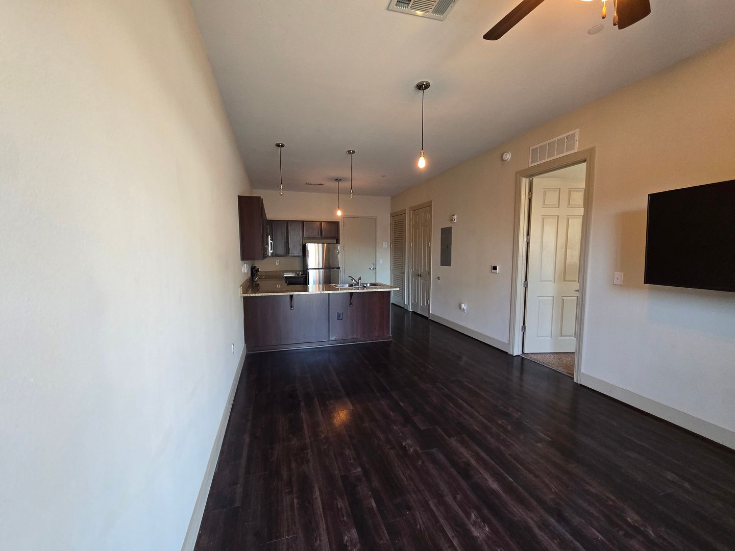 Contemporary Finishes: Beautiful wood floors throughout the living room and kitchen, durable tile in the bathroom, and cozy carpet in the bedroom.